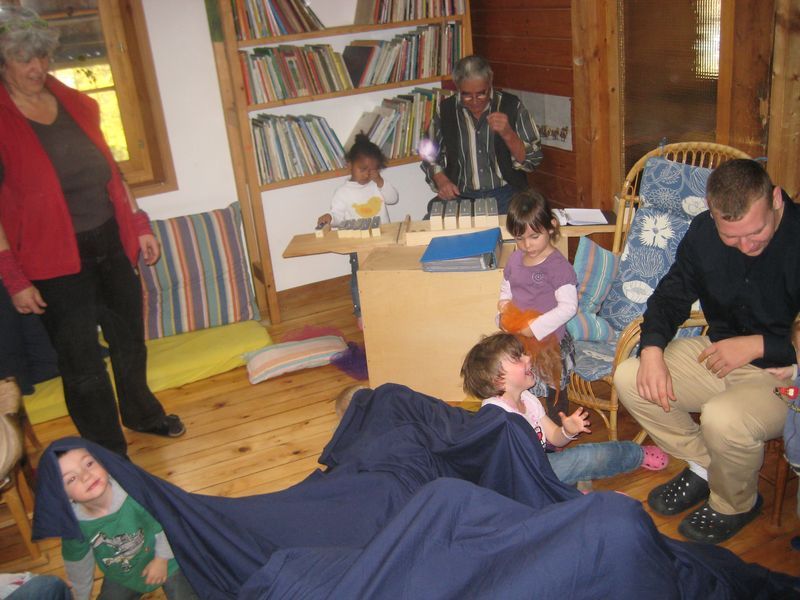 Im Winterhalbjahr besucht uns einmal die Woche «Musig-Fredi» mit seinem Xylophon. Die Kinder singen, tanzen und experimentieren mit Klängen, Geräuschen und Rhythmen. Dabei steht immer die kindliche Spiel- und Entdeckungsfreude im Zentrum.